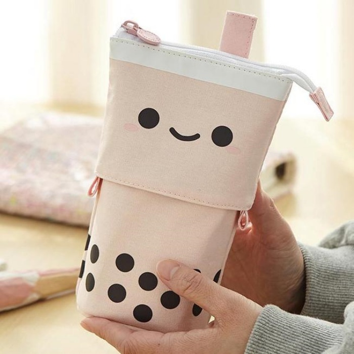 귀여운 버블티 스탠딩필통 2컬러 - 패브릭 세우는필통 봉제필통 파우치 캐릭터 특이한필통 펜케이스