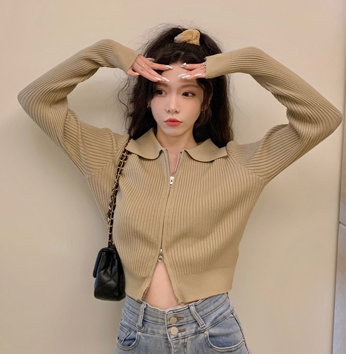 공항패션 공항룩 꾸미 올데이 니트 크롭 집업 가디건