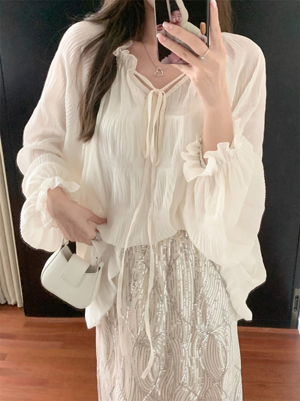 [투피스코디]루즈핏 주름 셔츠 블라우스 스팽클 롱스커트 투피스 코디세트