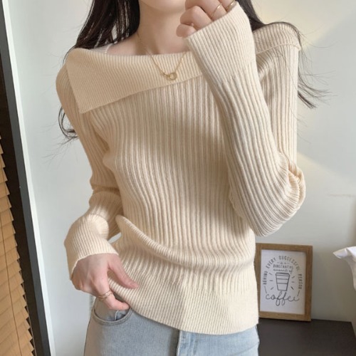 봄룩 언발 오프숄더 어깨트임 봄니트 스웨터