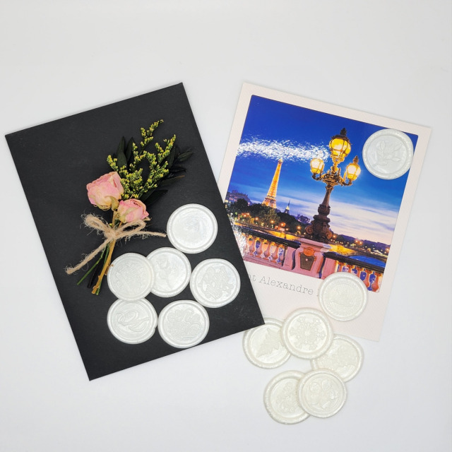 실링왁스 스티커 핸드메이드 청첩장 다꾸 답례품 포장 화이트펄 10개 디자인선택가능 인장2.5cm