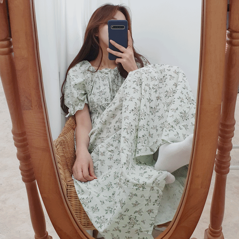 [잠옷원피스/시원재질] 플라워패턴 반팔 파자마 롱원피스