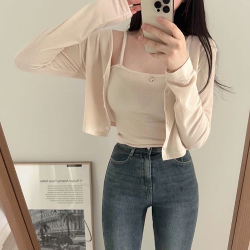 나시+가디건 세트, 청순가련 스판 골지 나시 가디건