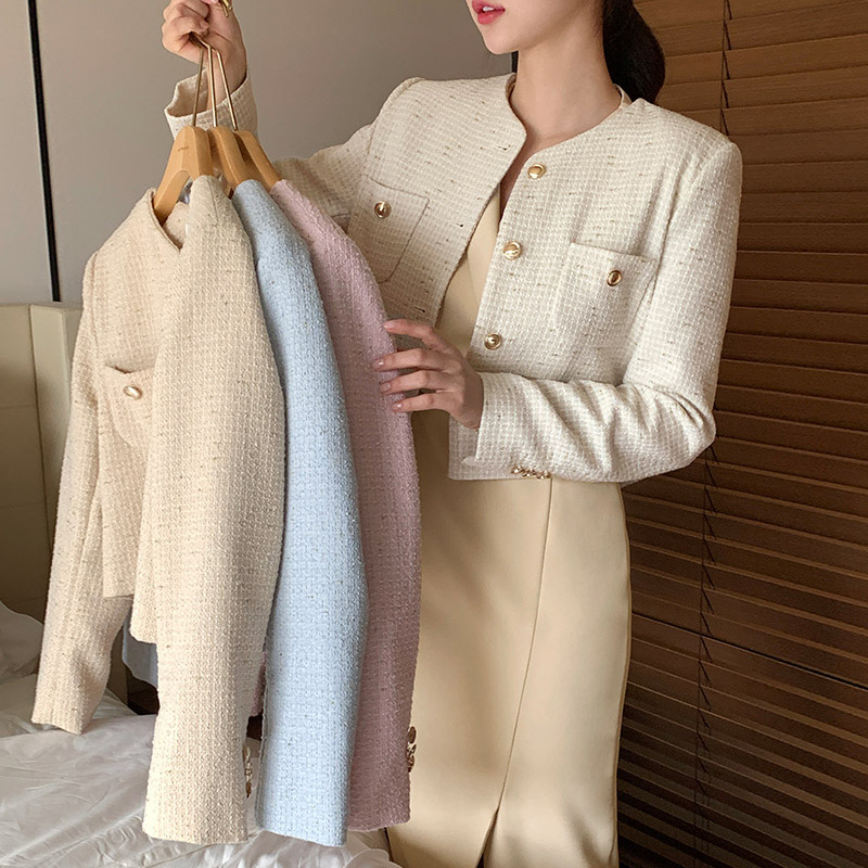 3만장 돌파✨ [2기장/트위드자켓1위] 골드 트위드 세미크롭자켓 노카라 자켓 노카라자켓 자켓,데이트룩,상견례룩,데일리룩,나들이룩,하객룩,모임룩 jk2596