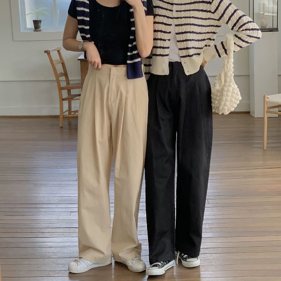 [오늘출발] 리버스 투핀턱 코튼슬랙스 (와이드팬츠,핀턱슬랙스,와이드슬랙스,코튼팬츠,면슬랙스,간절기,하객룩,출근룩)