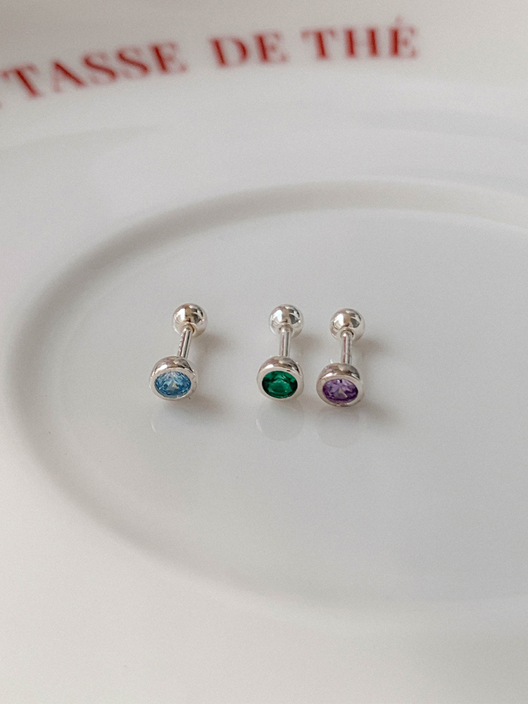 (실버925) 3color 초 미니 컬러 큐빅 원형 피어싱