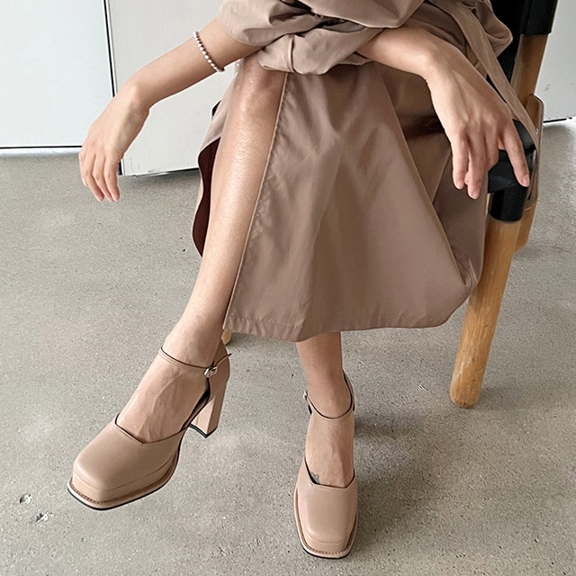 스퀘어 플랫폼 스트랩 펌프스힐 (9cm)