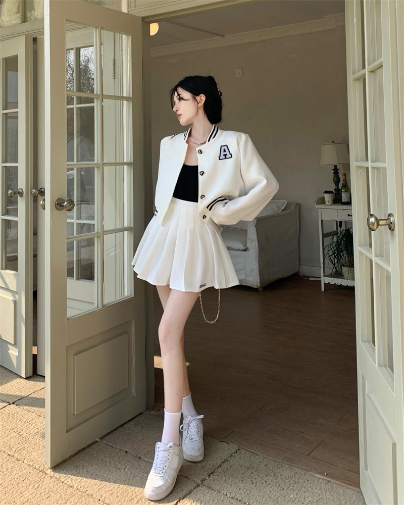 투피스 캐주얼 숏 야구 점퍼+플리츠 미니 스커트 치마 세트 2color 캐주얼룩 데일리룩 여친룩 데이트룩