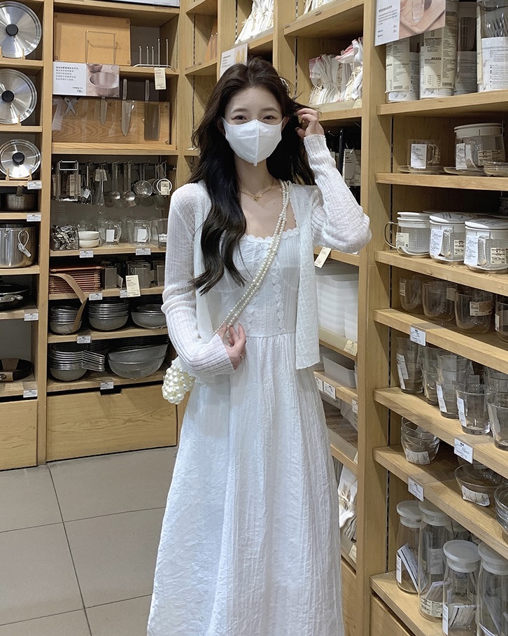 [단독][휴양지원피스🌴/나시원피스]봄 여름 비치 휴양지룩 레이어드 끈나시 롱원피스 (가디건/여행/동남아/바캉스/썸머/살안타템/여리여리)