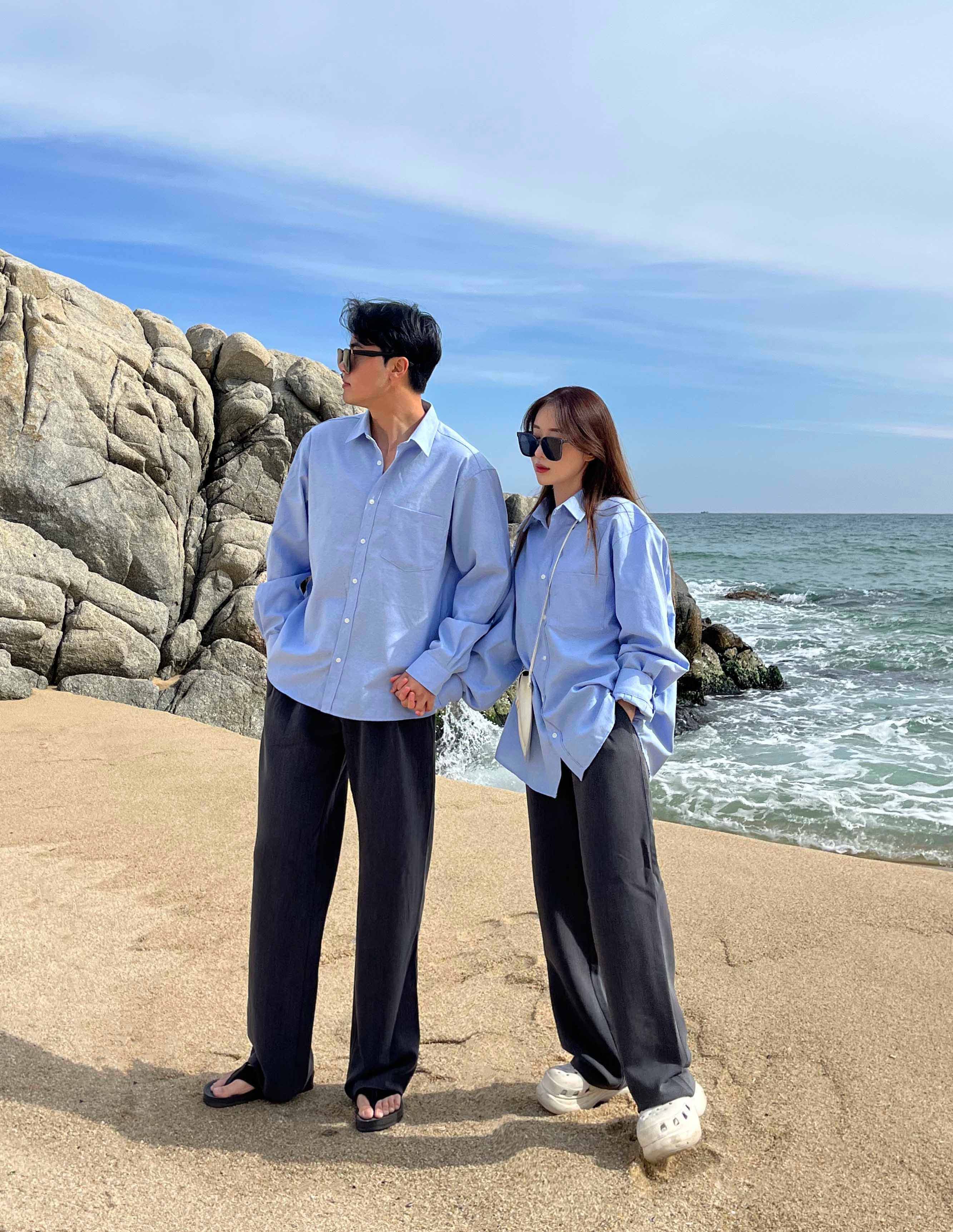 *세트가능[옥스퍼드/3컬러] 남녀공용 고퀄리티 코튼 옥스퍼드 오버핏 데일리 데님 셔츠 사계절 와이드 일자 슬랙스 커플룩 시밀러룩 데이트룩