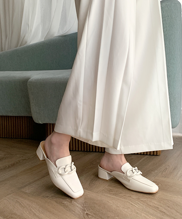 ❤빠른배송❤ 모던한 여성 무광 체인 스퀘어 발편한 통굽 블로퍼 뮬 개강룩 신발 정장룩 낮은구두 쿠션블로퍼 결혼식 하객룩 봄옷 와이드 슬랙스바지 롱스커트코디 4.5cm / 404