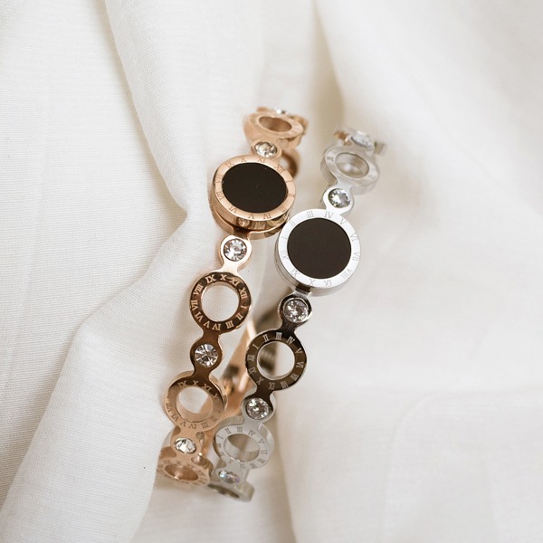 써지컬스틸 블랙오닉스 로마숫자 간편착용 뱅글팔찌