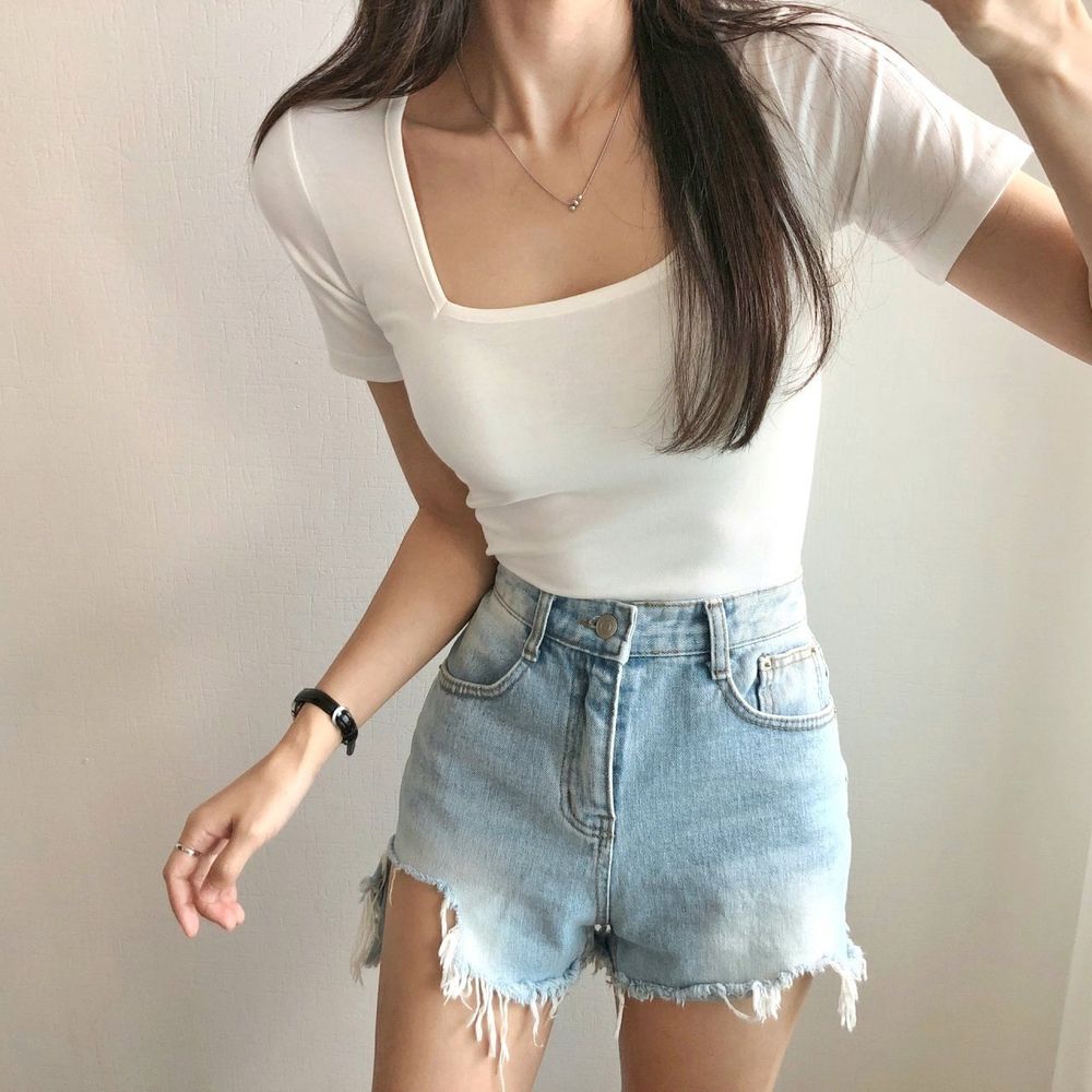 [1+1/초특가] 쫀쫀 스퀘어넥 크롭 무지 반팔 여름 기본 이너 하이틴 쫄티 딱붙티 기본티 반소매 반팔티 4color (학생옷/데일리/딱붙는티/레이어드티)