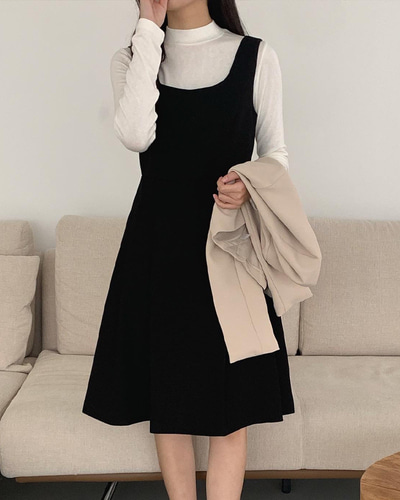 (클리어런스/당일)깔끔 에이라인 핀턱주름 미디 뷔스티에 원피스 하객룩 출근룩 민소매원피스(80944)