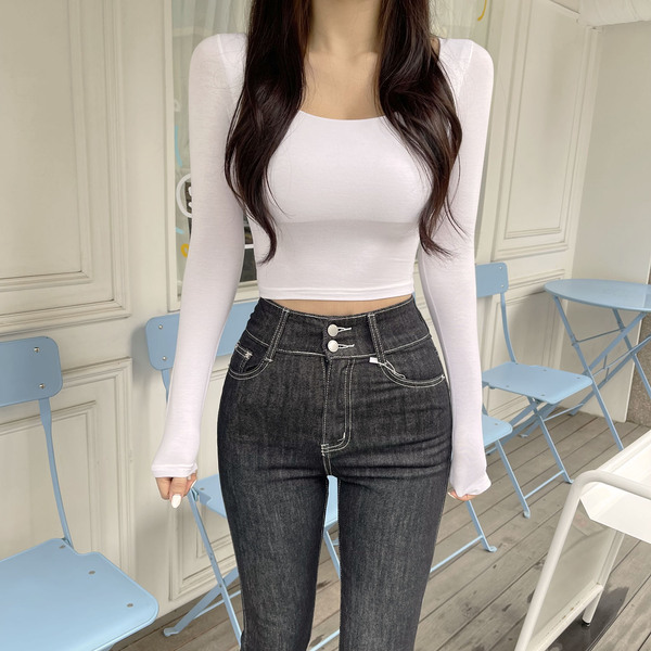 여성 기본 슬림핏 스판 크롭탑 쫀쫀 긴팔 티셔츠 5컬러