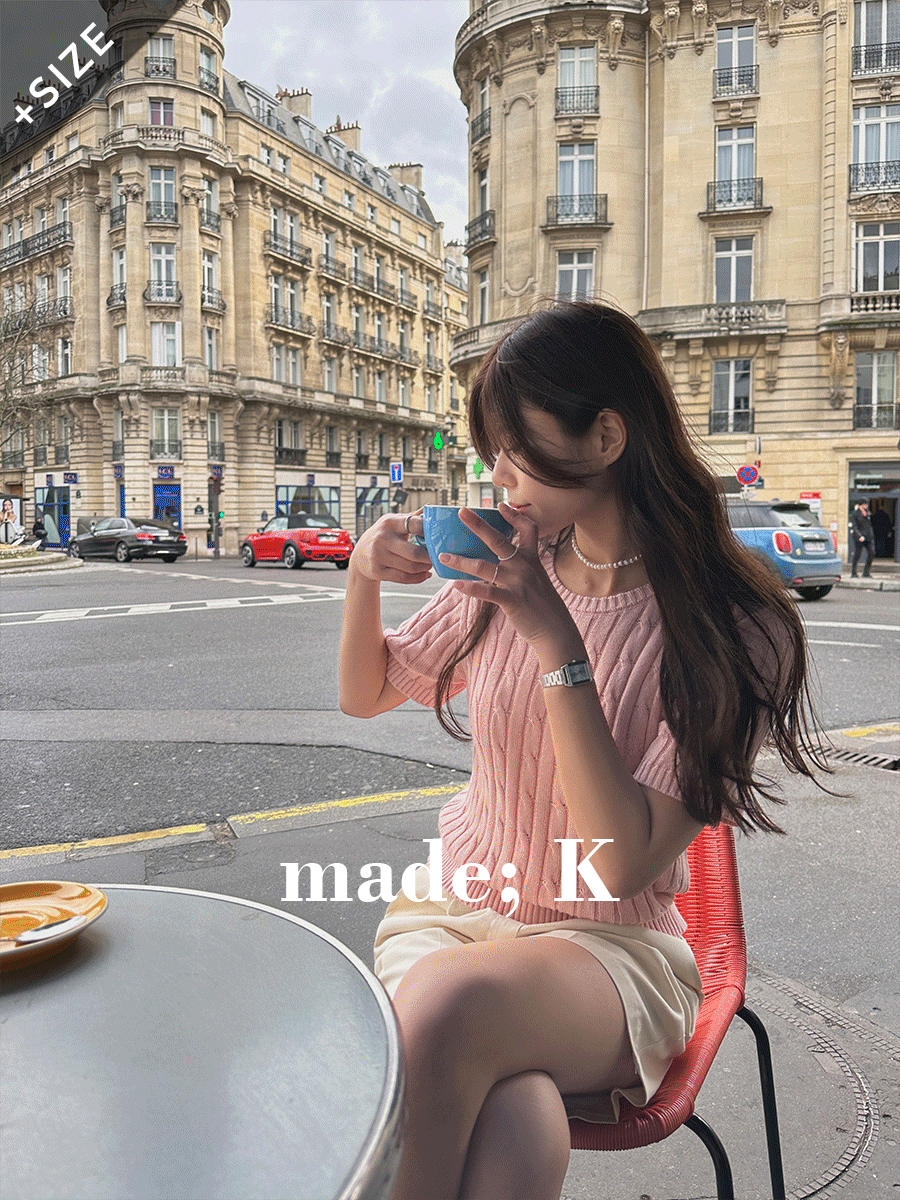 [MADE]모스비 케이블 반팔 니트 (S-L/데일리룩/출근룩/가을니트/이너니트/케이블니트/라운드넥니트)