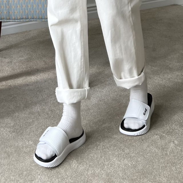 [양말 증정] 남여공용 소가죽 벨크로 스트랩 슬리퍼 휴가 바캉스 사무실 슬리퍼