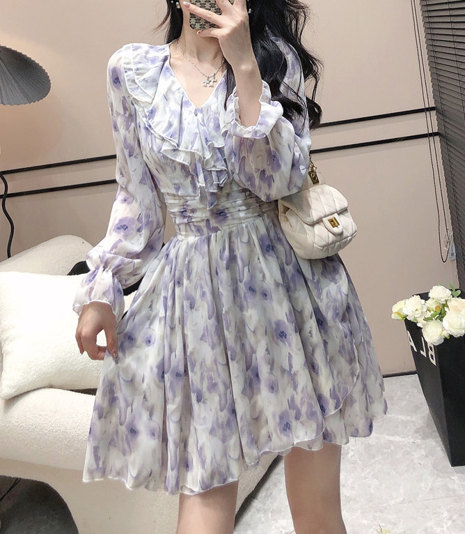 그라데이션 플라워 쉬폰 프릴 원피스