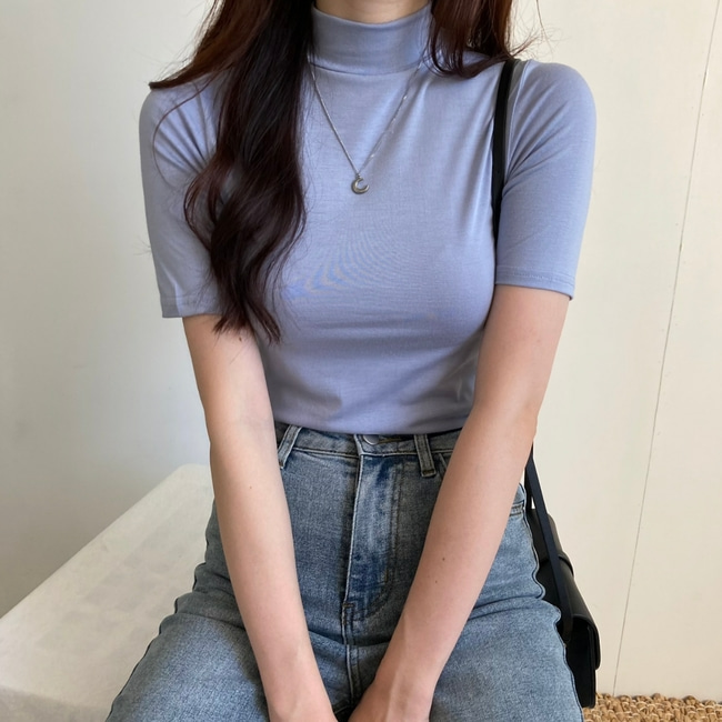 자켓 안에 입기 좋은 쫀쫀 스판 반폴라 반팔 티셔츠 반목 폴라