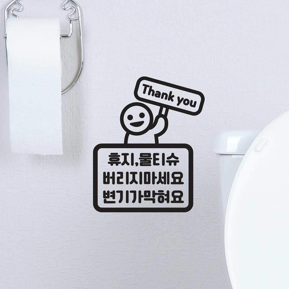휴지물티슈 버리지마세요 변기가막혀요 땡큐 화장실 스티커