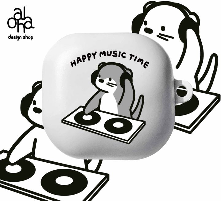 귀여운 수달 디제잉 일러스트 헤드셋 동물 일러스트 드로잉 버즈플러스 버즈라이브 버즈케이스 생일선물 커플 케이스