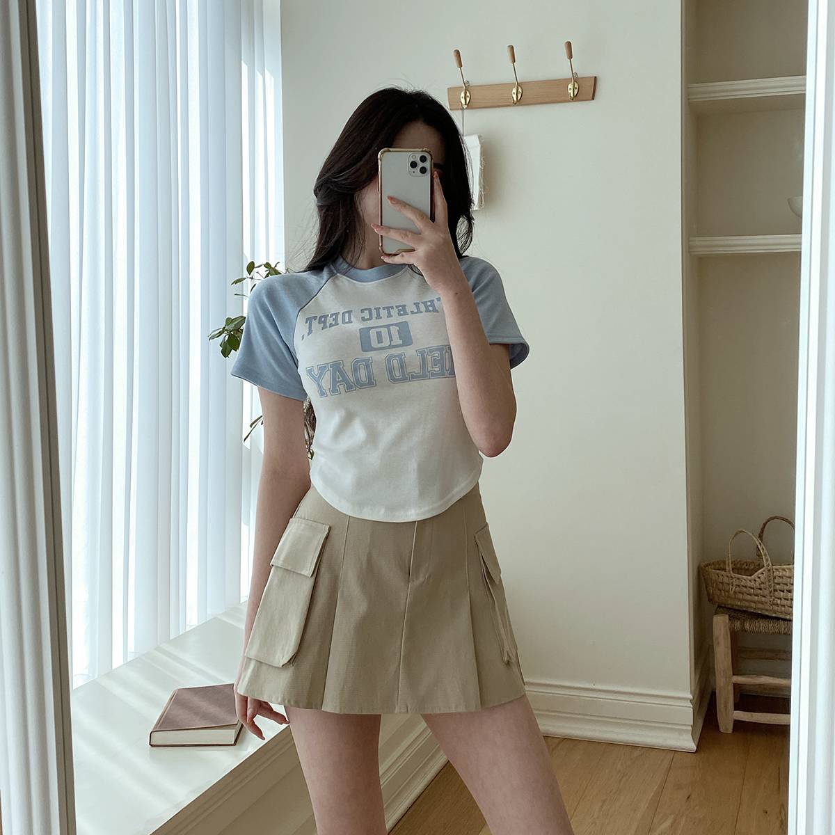 나운나그 슬림핏 라운드넥 나그랑 배색 영문 프린팅 반팔 티셔츠