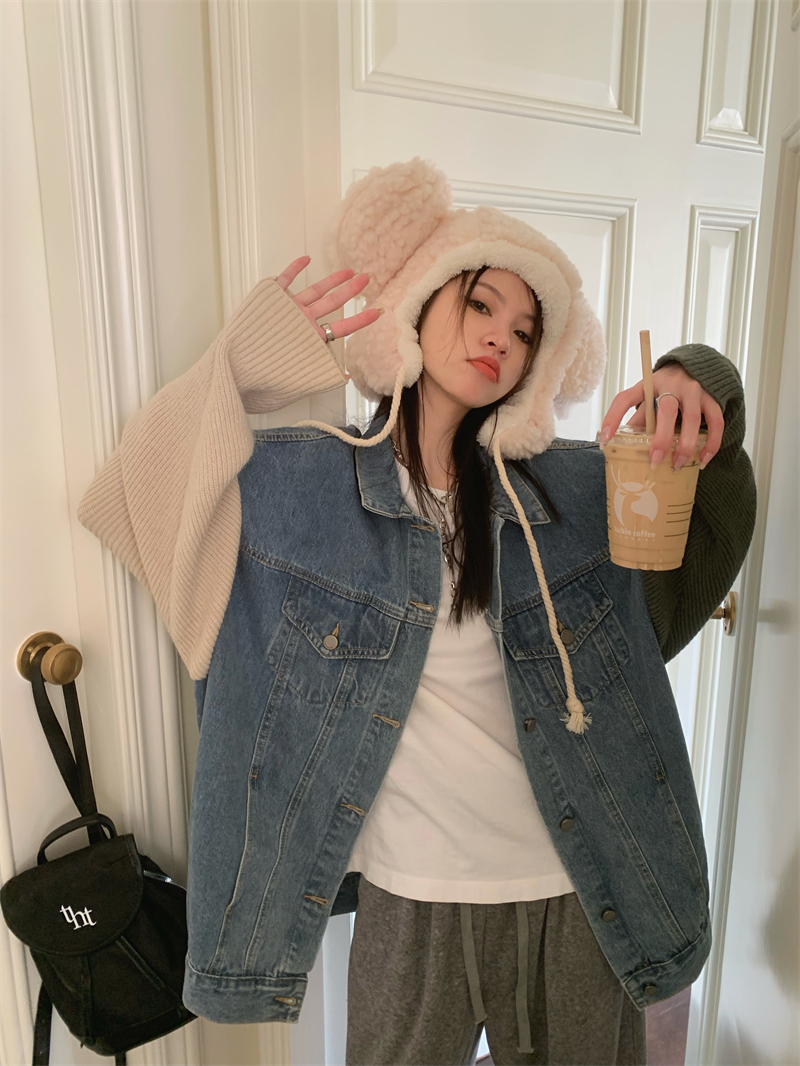 [당일출고] 데님 니트 청자켓 아우터 하프앤하프 간절기 봄 가을 빅사이즈 오버핏 루즈핏