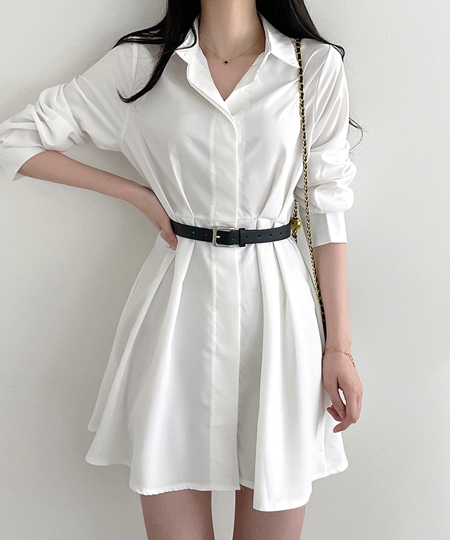 *벨트세트* 포드 셔츠 히든버튼 핀턱 플레어 미니 원피스 / 봄 가을 간절기 긴팔 오피스룩 하객룩 데일리룩 소개팅룩 새내기룩 개강룩 데이트룩 데일리룩 20대하객룩 20대원피스 벚꽃룩 나들이룩