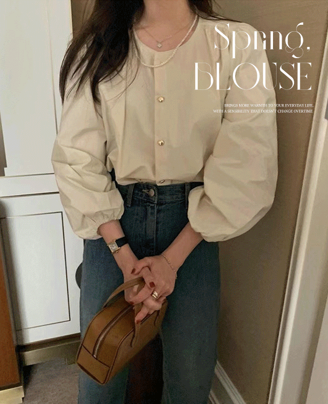 [핏굿/하객룩추천!] 하트버튼 라운드넥 심플 블라우스 - 3color