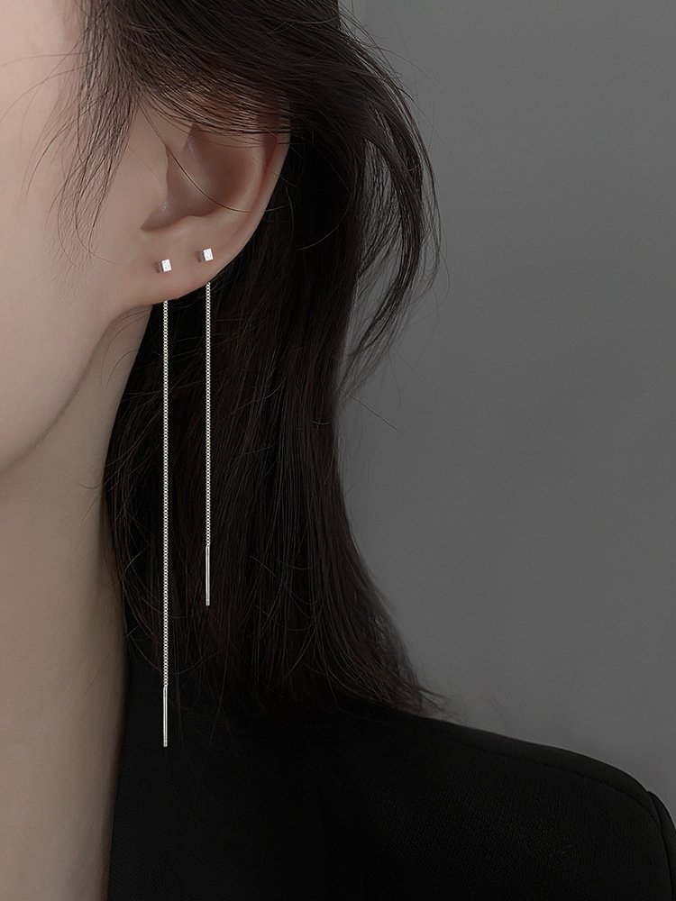 925 실버 롱 줄 드롭 체인 긴 은 귀걸이 92.5 순은 베이직 은침 13cm, 10cm
