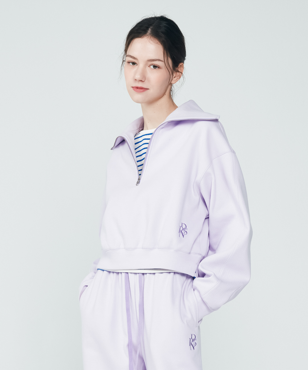 에센셜 크롭 하프 집업 맨투맨 (라이트 퍼플)