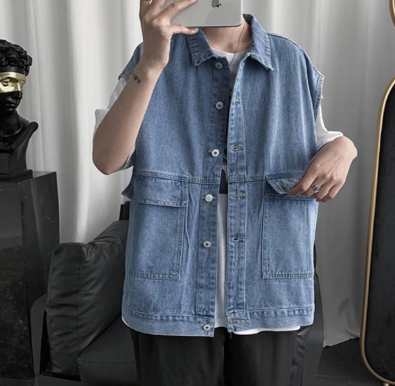 [2컬러/3사이즈] 데님조끼 청조끼 청자켓조끼 베스트 조끼 오버핏 데님자켓 청패션 남여공용가능 남성청조끼 남자청조끼 여성청조끼 여자청조끼 커플청조끼 데님 청 커플조끼 데일리조끼 봄