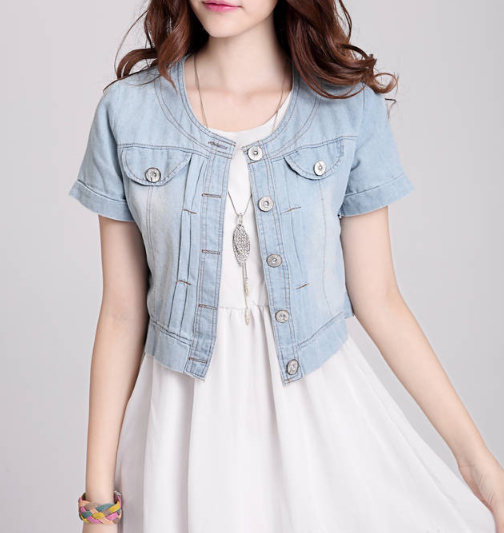 [2사이즈] 라운드청자켓 얇은청자켓 반팔자켓 여름용 반팔 청자켓 데님자켓 여성반팔자켓 여성반팔청자켓 데일리청자켓 원피스코디 레이어드청자켓 캐주얼청자켓 여자청자켓 크롭 숏 얇은
