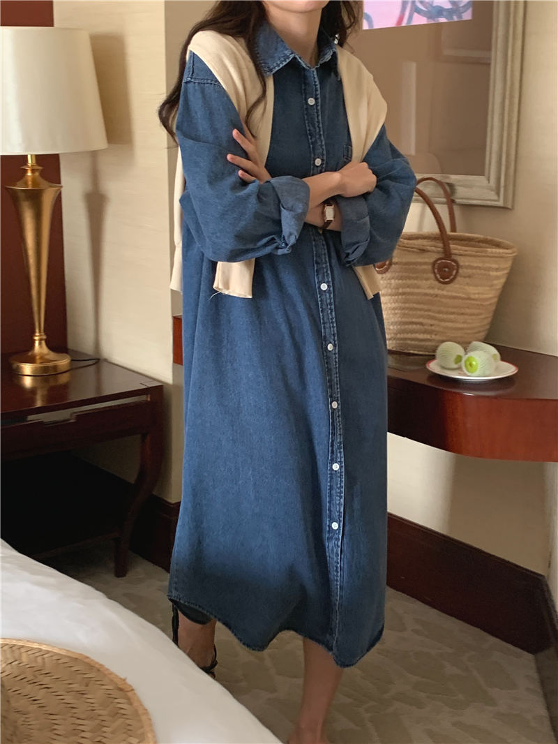 [당일출고/데일리템/출근룩] 리카 데님 롱 청 셔츠원피스 긴팔 원피스 (2colors)