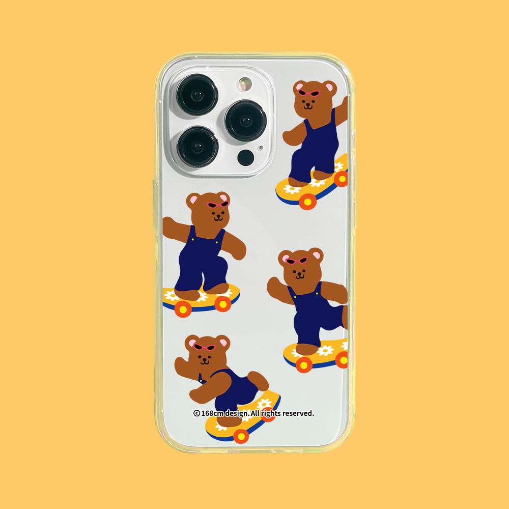 (젤리) 캘리베어 보드 패턴 베어 . 네오디뮴 마그네틱 투명 범퍼 케이스 아이폰 커플 젤리 생일 선물 실리콘 15 16 16e SE4 17 프로 맥스 갤럭시 S24 S25 엣지