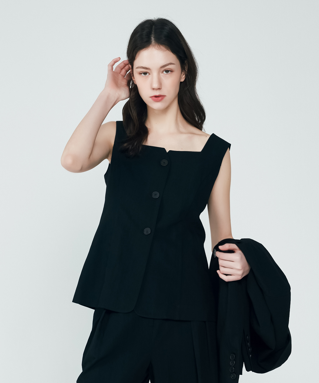 슬림핏 스퀘어넥 뷔스티에 조끼 (블랙)