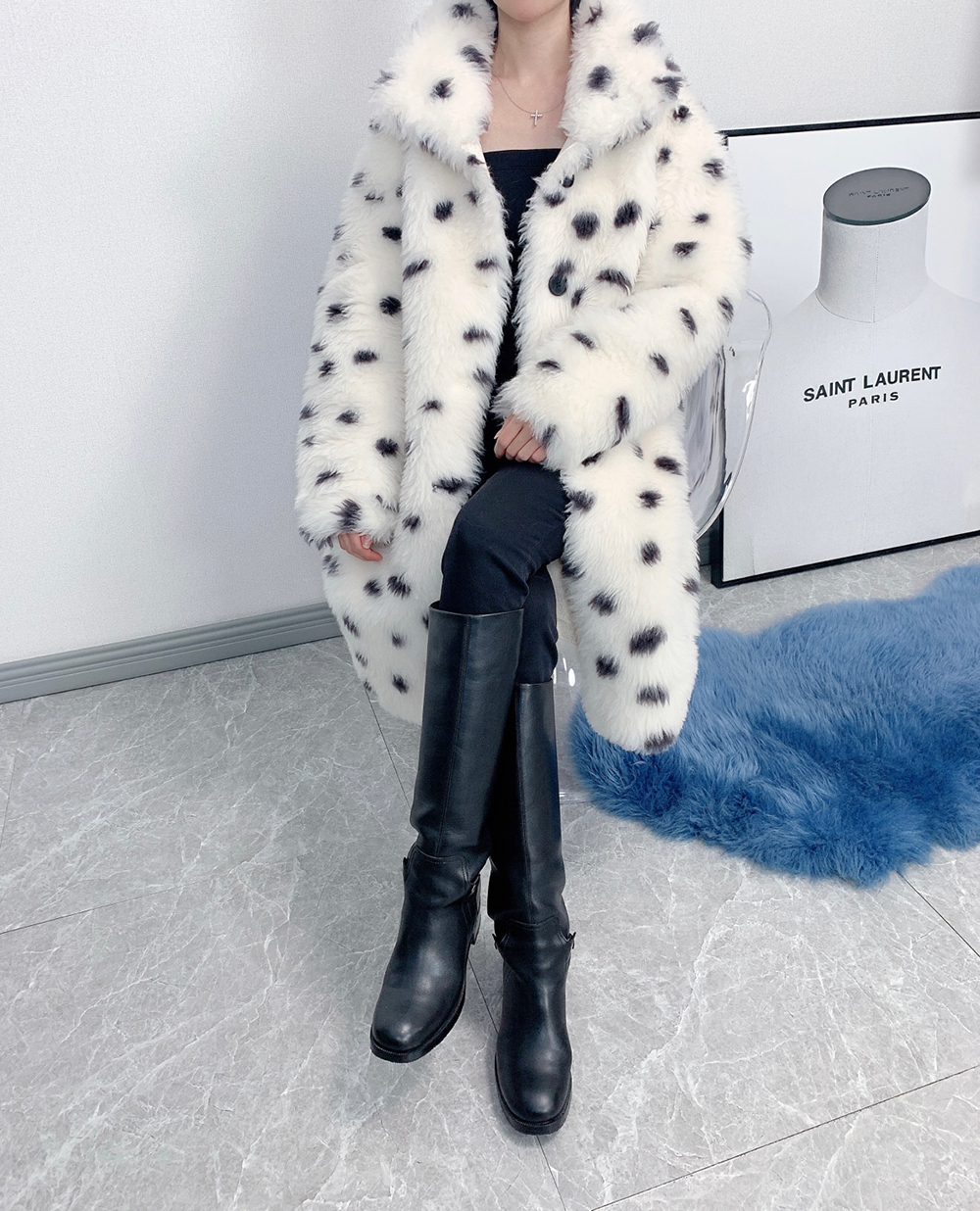 [바나이 BANAI] 리얼 100% 양털 코트 달마시안 무늬 도트 롱기장 아우터 양모 (2color)