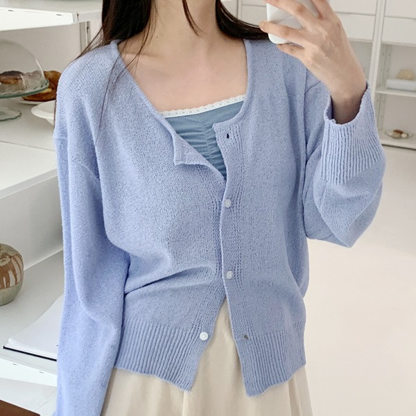 U넥루즈부클가디건