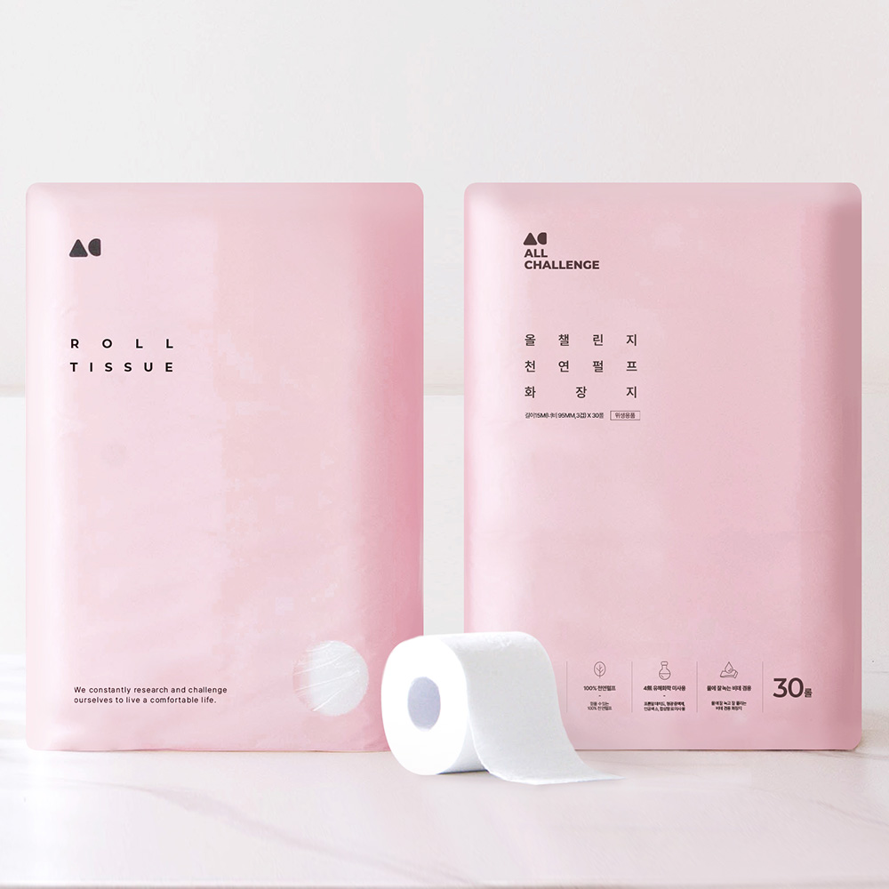 올챌린지 100%천연펄프 3겹 화장지 두루마리휴지 15m 30롤 2팩