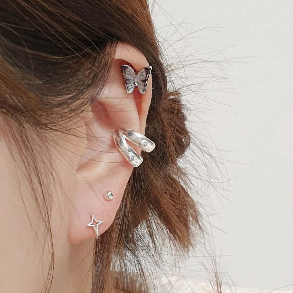 실버925 트윈 볼드한 두줄 원터치 귀걸이 이너컨츠 링 피어싱