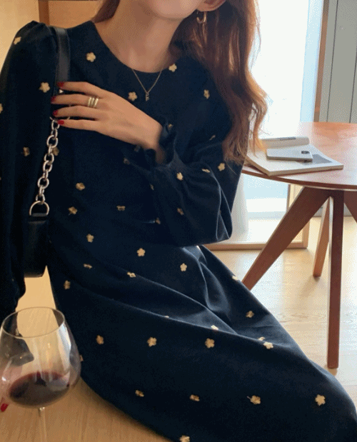 메리골드 벨벳원피스 겨울원피스 자수 퍼프 롱원피스 연말원피스 파티룩