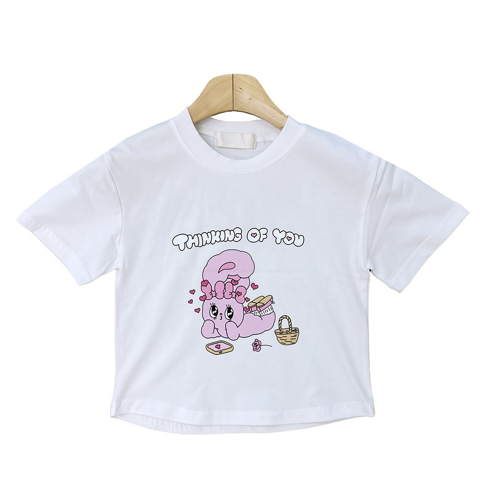 라라콩 여성용 토끼 크롭 상의 반팔 티셔츠