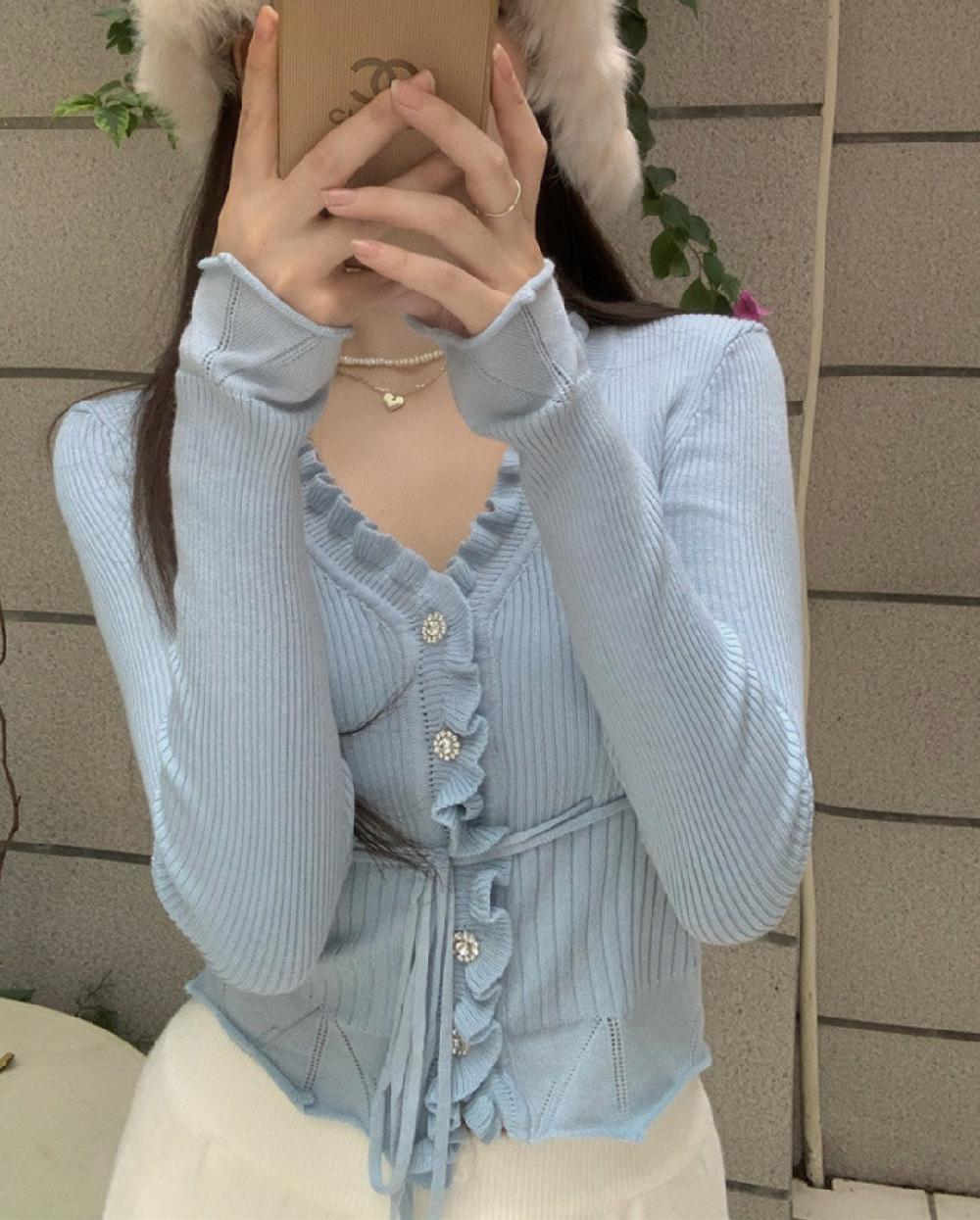 미아 레지나 꽃 큐빅 프릴 가디건/봄 가을 가디건