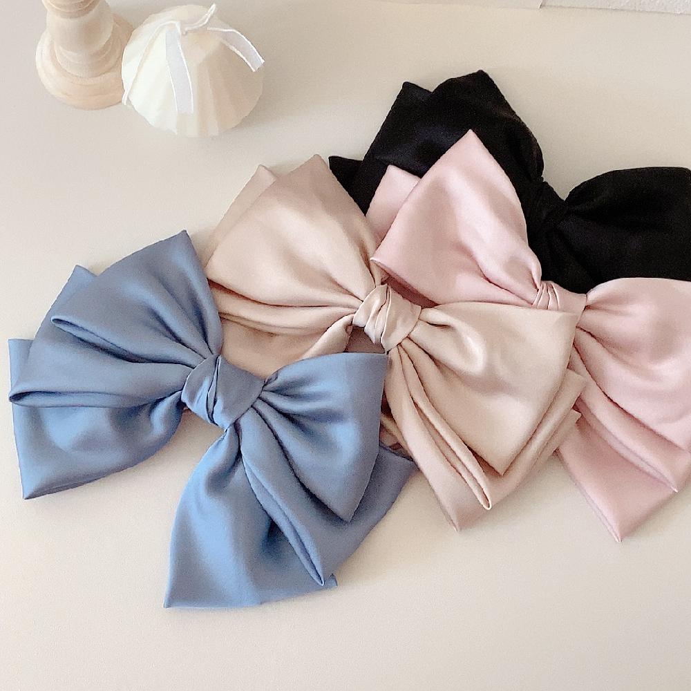3단 새틴 풍성 리본 머리핀 왕리본핀 4컬러 공단
