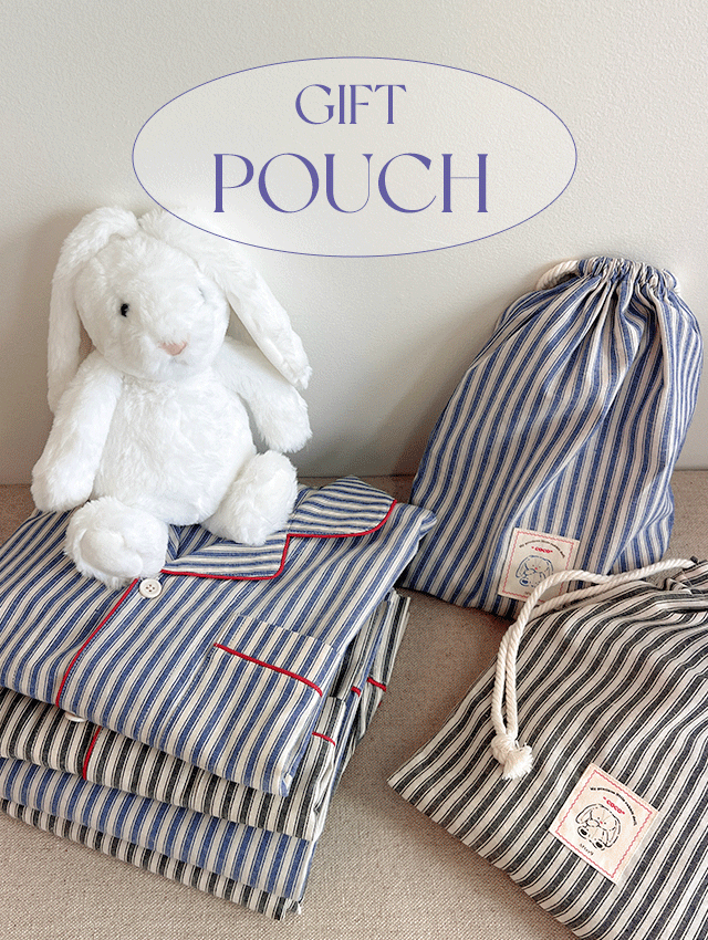 [파우치증정][A.made]코코 스트라이프 커플파자마 빅사이즈 사계절 긴팔 잠옷 파우치 세트