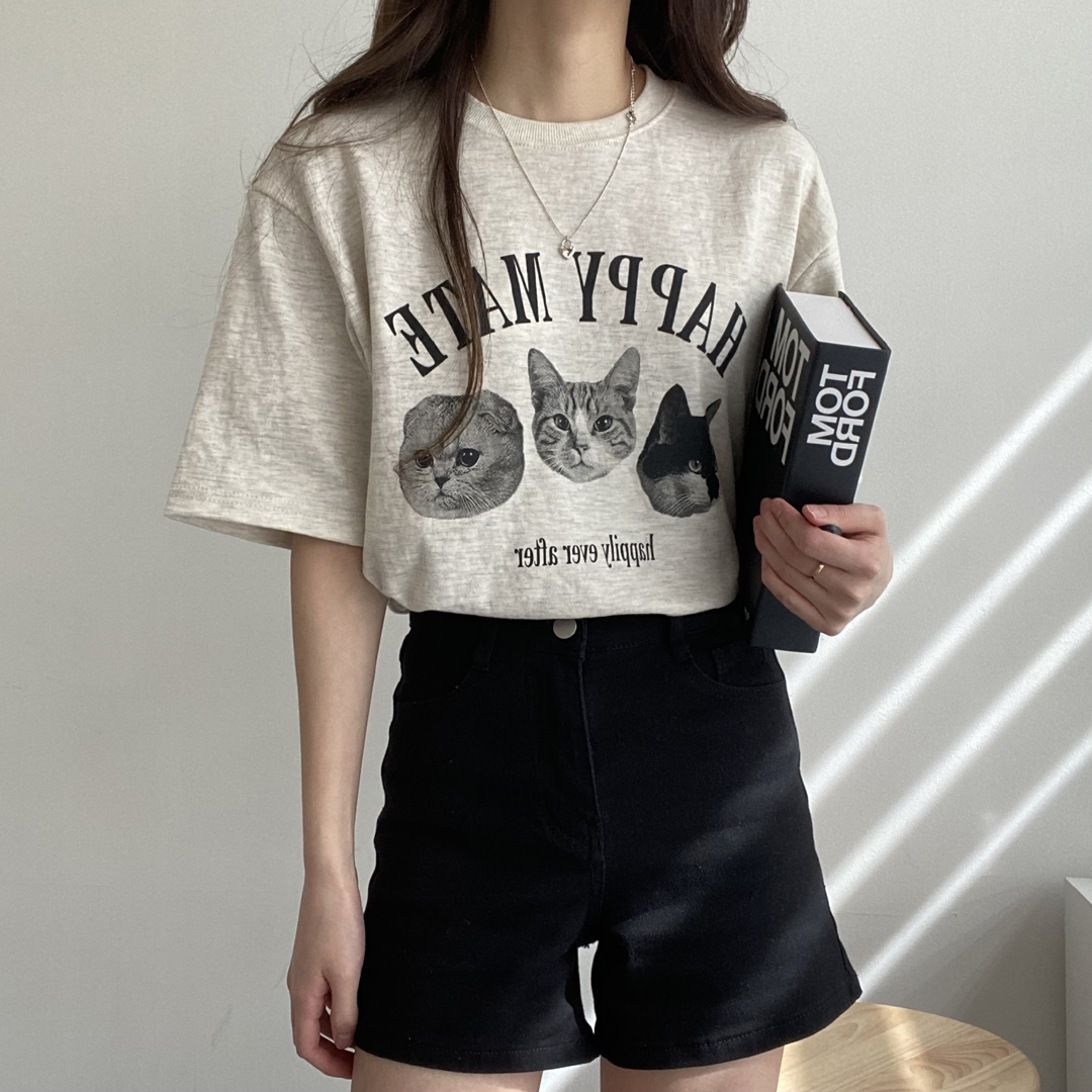 [데일리/꾸안꾸] 고양이 세마리 프린팅 반팔 티셔츠 4color