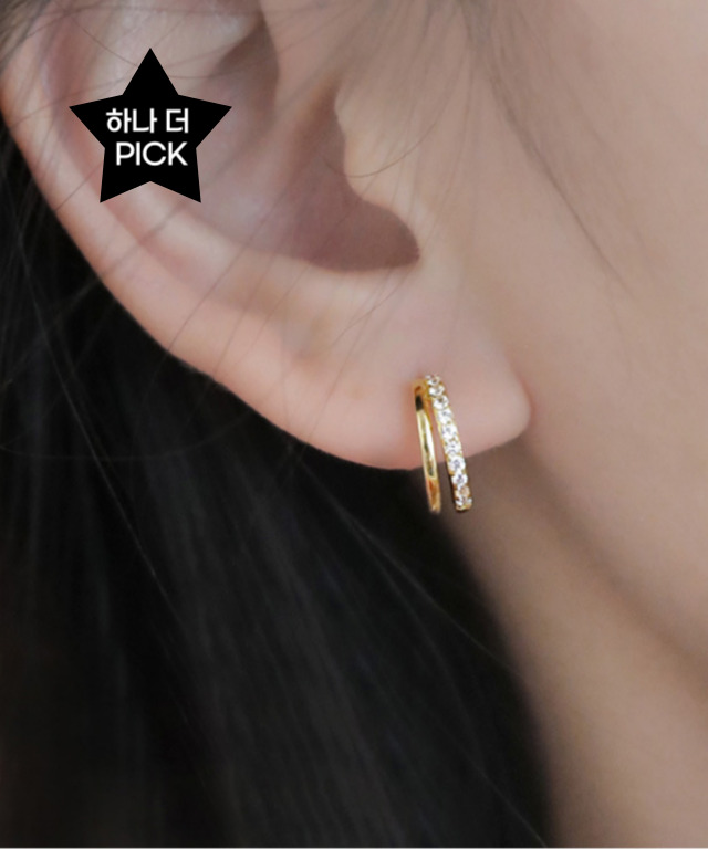 [1+1] 일더하기일 실버 925 하프문 큐빅 은 귀걸이