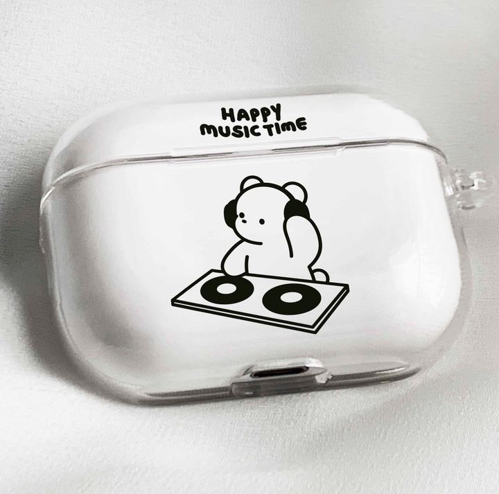 귀여운 디제잉 곰돌이 프로2케이스 에어팟 123세대 화이트 옐로 오렌지 핑크 노랑 민트 퍼플 네이비 블랙 투명하드 반투명 젤리 케이스 남친 여친 선물 생일선물 예쁜케이스