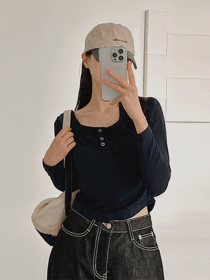 [무료배송][5천장 돌파✨] 센밀리 스판 스퀘어넥 세미크롭 티셔츠 ( 봄신상-봄-가을-겨울-하객룩-출근룩-데일리룩-데이트룩-페미닌룩-빅사이즈-120사이즈-꾸안꾸-교복템-편안한-가벼운-딱붙-얇은긴팔-베이직 )