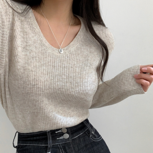 [MOMENT JOY/국내제작/뱀부40%] 이너 정석 뱀부 글로리 가을 슬림 데일리 유넥 라운드 골지 긴팔 니트